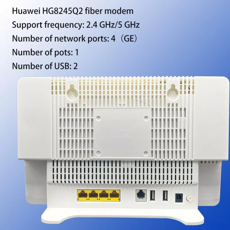 TENKILOMETERS 高品質 HG8245Q2 デュアルバンド WIFI5 XPON ONU ONT FTTH は、ファーウェイの全光アクセス ソリューションのルーティング タイプの ONT です。 GPON テクノロジーを使用して、ユーザーに超ブロードバンド アクセスを実装します。このモデルは、4 GE+2 POTS+1 USB+2 WiFi (4 GE ポート、2 POTS ポート、1 USB ポート、1 2.4G WiFi ポート、および 1 5G WiFi ポート) を提供します。高い転送パフォーマンスにより、音声、データ、および HD ビデオ サービスのユーザー エクスペリエンスが保証され、理想的な全光アクセス ソリューションと未来志向のサービス サポート機能が顧客に提供されます。